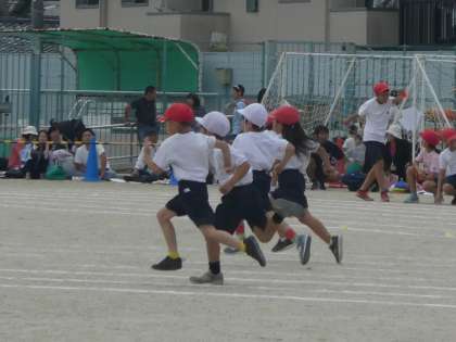 小学生として、初めての短距離走。前へ!前へ!全力でゴールに向かいます。
