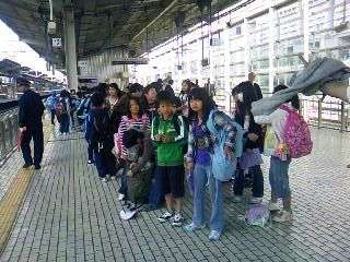 京都駅8時56分発のひかり号で一路、名古屋に向かいました。みんなとても元気で、ワイワイとにぎやかな車中、あっという間に名古屋駅に到着しました。