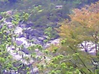今朝は、山の上に少しモヤがかかっていますが、いいお天気です。新緑の山々がとてもきれいです。下に見える寝覚めの床を流れる木曽川から、気持ちのよいさわやかな空気が流れてきます。