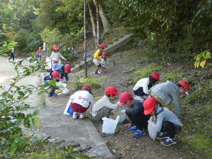 5日(火)午前、1年生が船岡山公園へ「秋見つけ」に出かけています。色づく木々の中に入り込み、落ち葉やどんぐり、松ぼっくりなどを集めました。