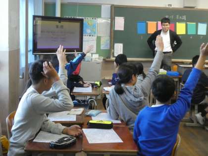 8日(金)午後、旭丘中学校で「旭中へ行こう」が行われました。本校の6年生が、鷹峯小・鳳徳小の6年生とともに参加。まず取り組んだのは、授業体験です。中学校は、教科によって先生が変わります。あらかじめ希望した6つの教室に分かれて、しっかり学習しました。