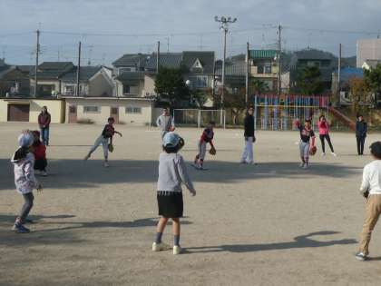 16日(土)午前、いつも本校グランドで練習されている“待鳳ドラゴンズ”のお世話で「キャッチボール大会」を開きました。キャッチボールから始まって、遠投、ベースランニング、トスバッティング、ストラックアウト等々…。半日ではありましたが、野球の楽しさを味わう時間になったと思います。