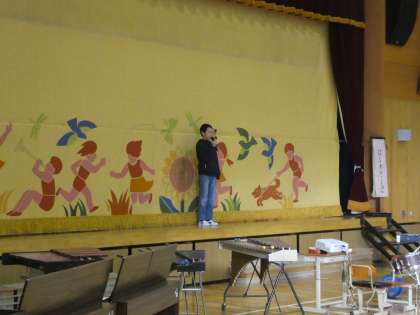 朝から多くの子どもたちが、「きょうは、学習発表会やな!」「ドキドキする!」と話してくれました。雰囲気が高まるなか、計画委員 代表のあいさつです。みんな、「今か、今か…!」と出番を待ちます。