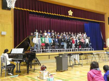 「音を楽しむ」と書いて「音楽」。4年生の発表は、まさにそれを地で行く内容となりました。通常の合唱・演奏に加えて、それぞれが野菜になってリズムをとったり、手作りの楽器を鳴らしたり…。発表する人が楽しむ様子が伝わってきて、観ているこちらまで楽しくなりました。