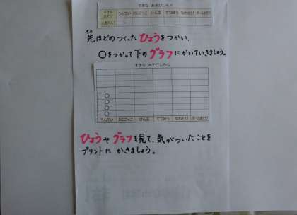 できた“ひょう”と“グラフ”を見て 気がついたことをプリントにかいてみましょう。