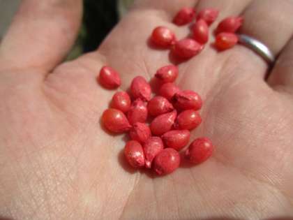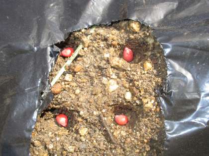 たねは,こんなかんじです。黒いシートのあながあいているところに,今回は4つぶずつまくことにします。指であなをあけて,そこにやさしくまきました。