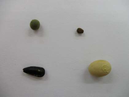 本当なら,ひとりひとりの手元にたねを用意して,さわって観察してもらいたいのですが…。とっても小さな種もあります。色,形,大きさ,さわりごこち…かんさつのポイントはたくさんありますね。1枚目でたねをよく見て,2枚目では,どれが何の植物かあててみましょう!わかるかな?