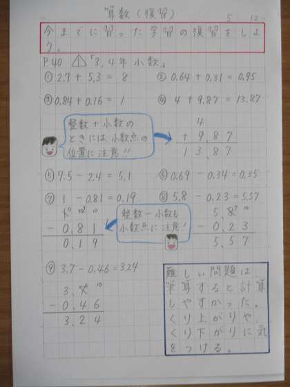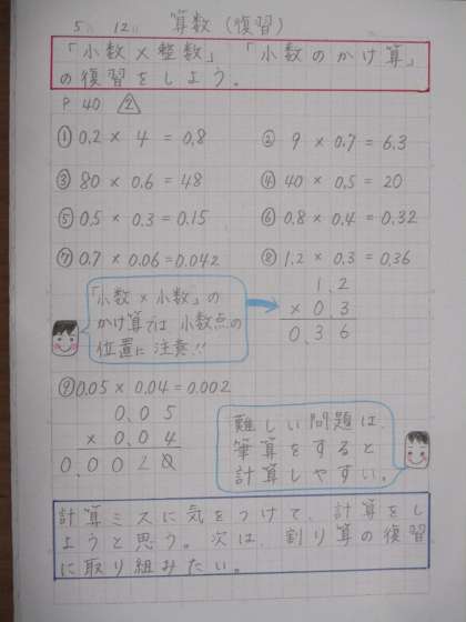 今日は,算数の自主学習をしてみました。計算の復習をしました。3年生〜5年生に習ったことの復習も大切ですね。
