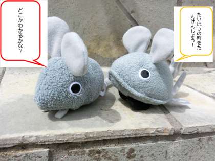先生もたいほうの町をたんけんして見つけたばしょをクイズにしてしょうかいします。