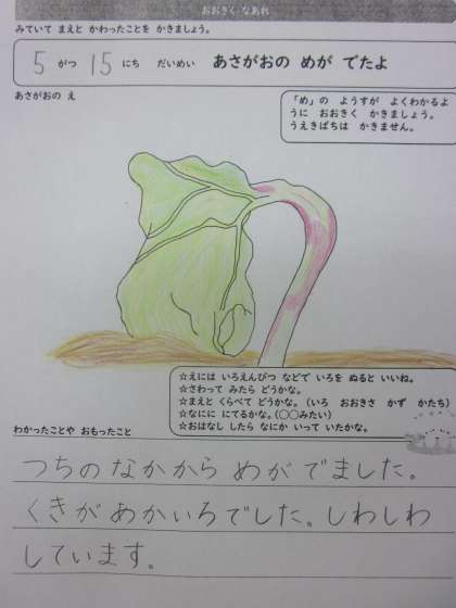 その場合は,今の時点で「あさがおの めが でたよ」の観察を