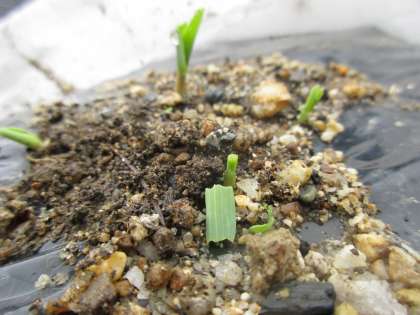 虫たちも生きるために,いっしょうけんめいです。わかくてやわらかい葉はおいしいのでしょう。でも先生も,しっかり育てるためにいっしょうけんめいです。9かしょたねをまいたうち,のこり8かしょはぶじでした。よかった!ほかの葉は食べられないように,がんばって見まもっていきたいと思います。