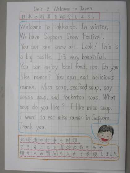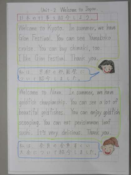 先生は今週の自主学習で,外国語 Unit-2「Welcom to Japan.」の内容を予習してみました。北海道や京都府,奈良県のことを紹介する文章を英語で書いてみました。英語で表現するのは難しいですが,「これを伝えたい!」と思ったことを伝えられたら,とても嬉しくなります。