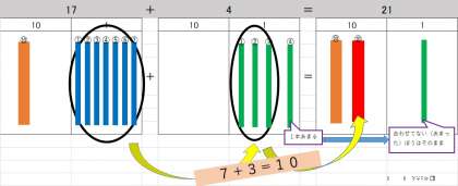 17+3=20になり,のこりの1をたして・・・