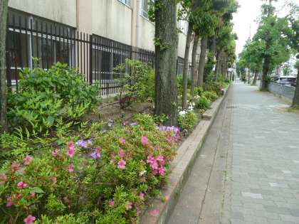 間もなく,学校がさいかいします。登校してきたみんなにびっくりしてもらおうと,雑草を抜いて花を植えました。なんだかとってもいい感じです。学校の北がわを通るときに,足を止めて見てくださいね。
