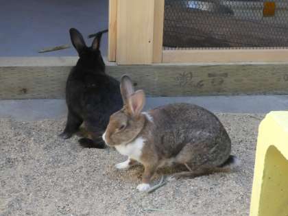2羽とも,新しい小屋に大喜び!外の砂場で走り回ったり,U字のブロックを出たり入ったり…。エサも もりもり食べていましたよ。みんなも時間を作って,様子を見てやってくださいね。