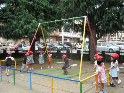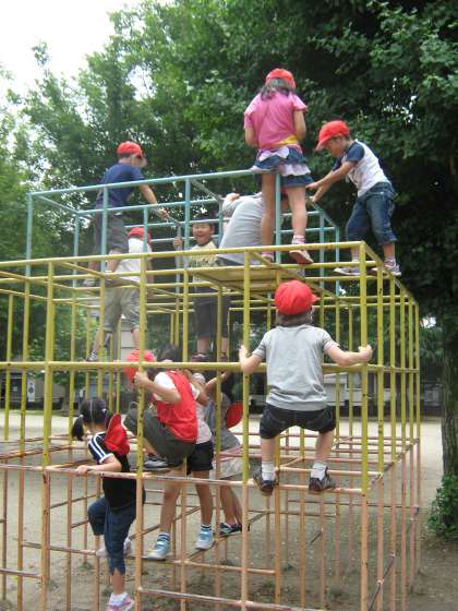 今日は,校区内の大門公園に出かけました。公園には,学校にはないいろいろな遊具がありました。みんなで楽しく遊んだよ。