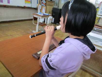 穴の押さえ方,息の吹き方などを確認して練習をすると,2人ともとても美しい音が出て,自分で「うわっ,きれいな音や!」と驚きながら喜んでいました。
