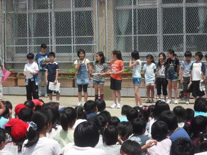 今日は楽しみにしていた「校内オリエンテーリング」です。縦割りグループでいろんなゲームやクイズに挑戦です。今年は5年生が中心になって運営しています。今日のめあては「グループみんなで力を合わせて仲良くなろう」です。さあ,オリエンテーリングの始まりです。