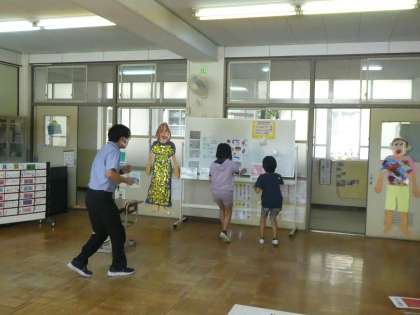仲よし学級は,外国語の時間“color ”と“family”をテーマに学習を進めました。“What color do you like ?”と問いかけて,答えた色を取りに行くゲーム・“family”のメンバーを描いたカードを使ったゲームで,楽しく英語を学びました。