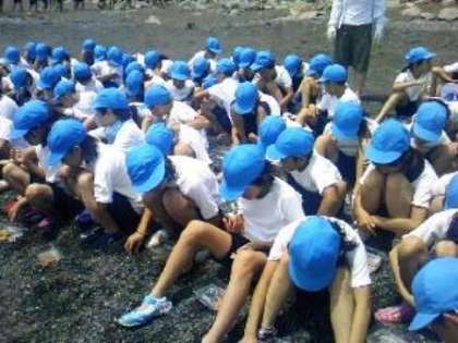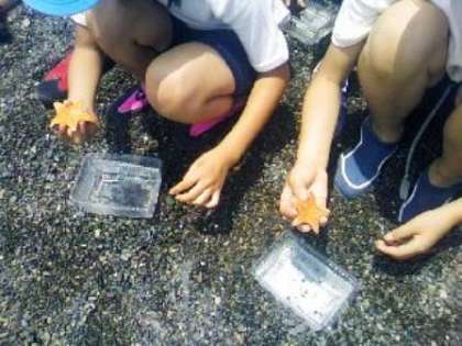 今日の午後の活動は、宮崎浜での礒学習です。礒の生き物たちを探します。ヒトデや礒カニ、貝や小さな魚など、いろいろな海の生き物たちが見つかり、子どもたちは大はしゃぎしています。