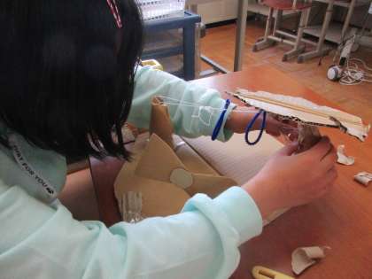 小さく細く切った段ボールを,とにかく上へ上へと貼り付けていったり・・・