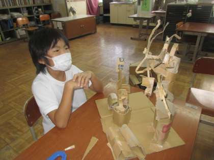 先週から,図画工作の学習で「段ボールの世界」という創作活動に取り組んでいます。