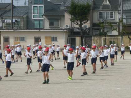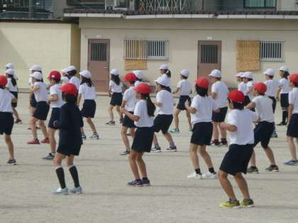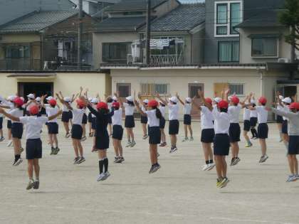 来週の体育参観では,「Eダンス体操」を行います。気持ちがそろってきたのか,動きもバッチリ!ノリノリでからだをほぐして,競技に備えましょう。