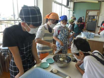 調理器具の煮沸消毒,自分自身の手拭きを使用,もちろん自分の食べるたまごは自分で剥くなど,二重三重の対策の上で実習を行いました。