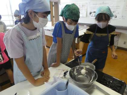 「好みのゆで加減の“ゆでたまご”を作ろう!」5年生が ストップウォッチを片手に,今年度初めての調理実習にチャレンジです。
