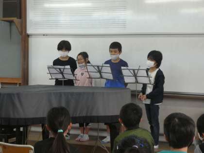 マスクからのぞく目の表情からも,子どもたちが発表を楽しんでいる様子が伝わってきます。