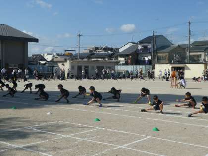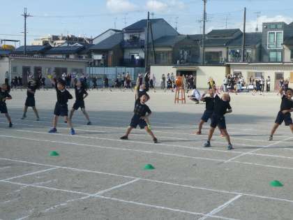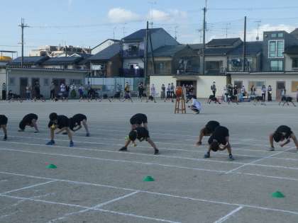 13日(火),例年の運動会に替えて「体育参観」を行いました。1・2時間目は1・2年生の出番です。
