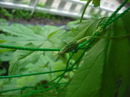4年生が育てているゴーヤにかわいい実がついています。