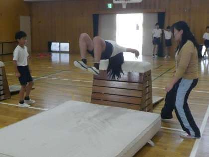 体育館では,別のクラスが跳び箱の練習をしていました。