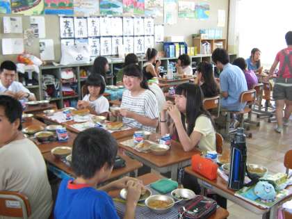 小大連携の外国語活動も今日で最後ということで,一緒に給食を楽しくいただきました。