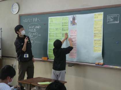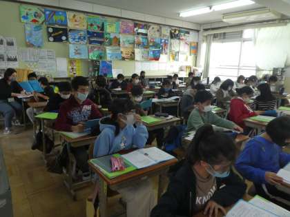 16日は,1日目に見学する「鶉野飛行場跡」の平和学習に取り組みました。戦争について考えたことや,質問したいことをまとめています。