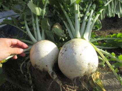 やっと出てきた聖護院大根は,丸々と大きくまっ白!しかもずっしりと重たい!