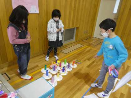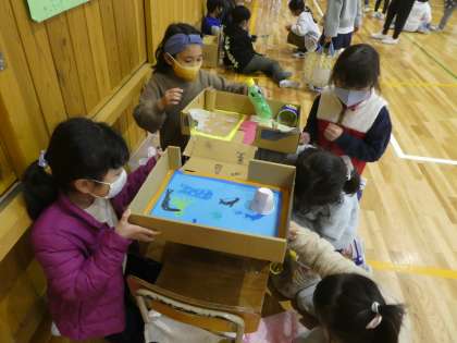 2年生が1年生を招待する「フェスティバル」を,12日(金)の1・2時間目に開きました。体育館には,2年生手作りのアトラクションや景品が並びました。