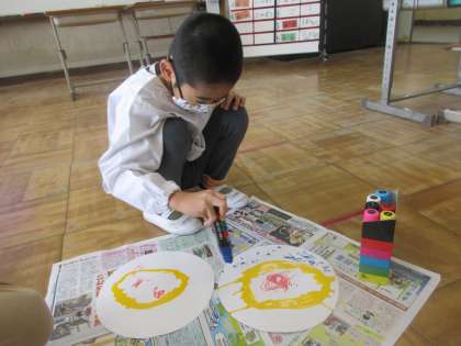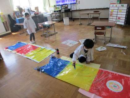 図画工作の時間に,自分だけの鯉のぼりを作りました。自分の体よりも大きなビッグサイズです。