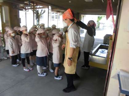 1年経つと2年生も,給食の当番活動をとても上手にしています。今日も給食のあいさつをきちんとしていました。