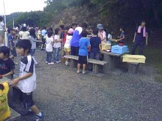 4年生は,深谷水道が見える野外炊事場で夕食です。グループごとに,夕食の準備をしています。