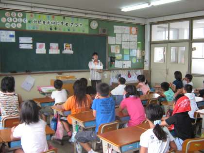 今日は栄養教諭の先生と食育の授業です。「よくかんで食べよう」をテーマに学習しました。なぜ,よくかむことが大切なのか分かりました。