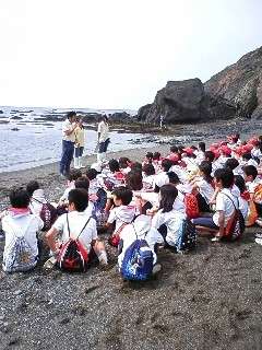 一方,5年生は大磯浜で磯観察です。こちらにも志摩マリンランド方に来ていただき,4年生と同じヒトデの実験をしてもらいました。