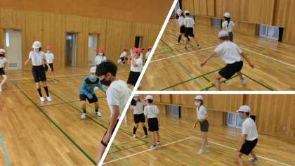 反復横跳びと,立ち幅跳びを体育館でしました。