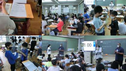 オールイングリッシュで進める授業。英語を聞き取ろうと,子どもたちも必死です。