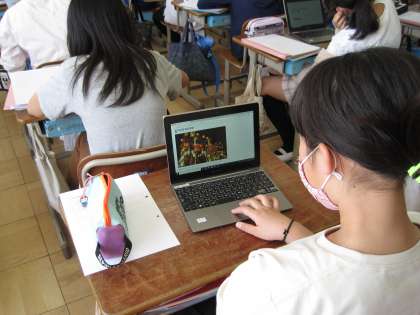 6年生の外国語ではGIGA端末を使用し,単元末のコミュニケーション活動のための情報集めをしました。指定したウェブサイトから検索し日本の行事がいつどこで行われているのか,その行事では何ができるのか調べ日本語と英語(ローマ字)でメモをとりました。