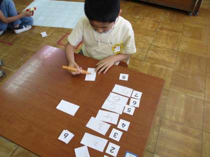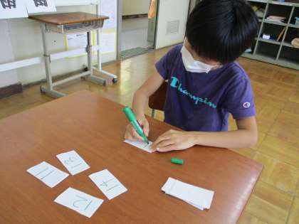1年生は,お手本を見ながら,1〜10までの数字を一生懸命書きました。できあがりにも満足な様子です。