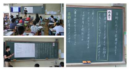ロイロノートで資料を配布し,マーカーで線を引きながら,クラスで引用の仕方につてい考えました。