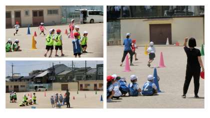 折り返しリレーをしました。暑い日でしたが,走る友達を励ましながら楽しく取り組んでいました。