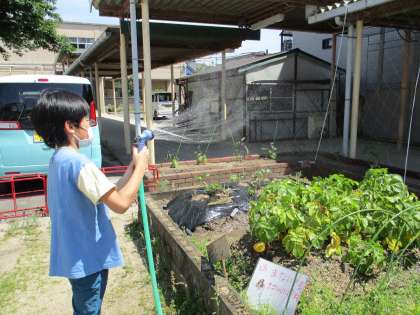 5年生は,園芸委員会の畑と,学級の畑と,どちらもしっかり水やりをしました。