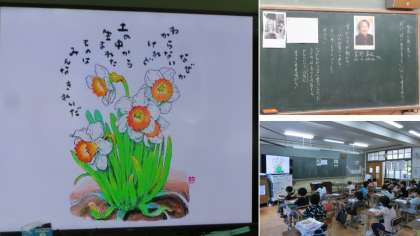 体が不自由でも,努力を重ねてすばらしい絵や詩を描いていらっしゃる星野富弘さん。その生きざまから,努力することの大切さや,人を思いやることのすばらしさについて,みんなで話し合いました。